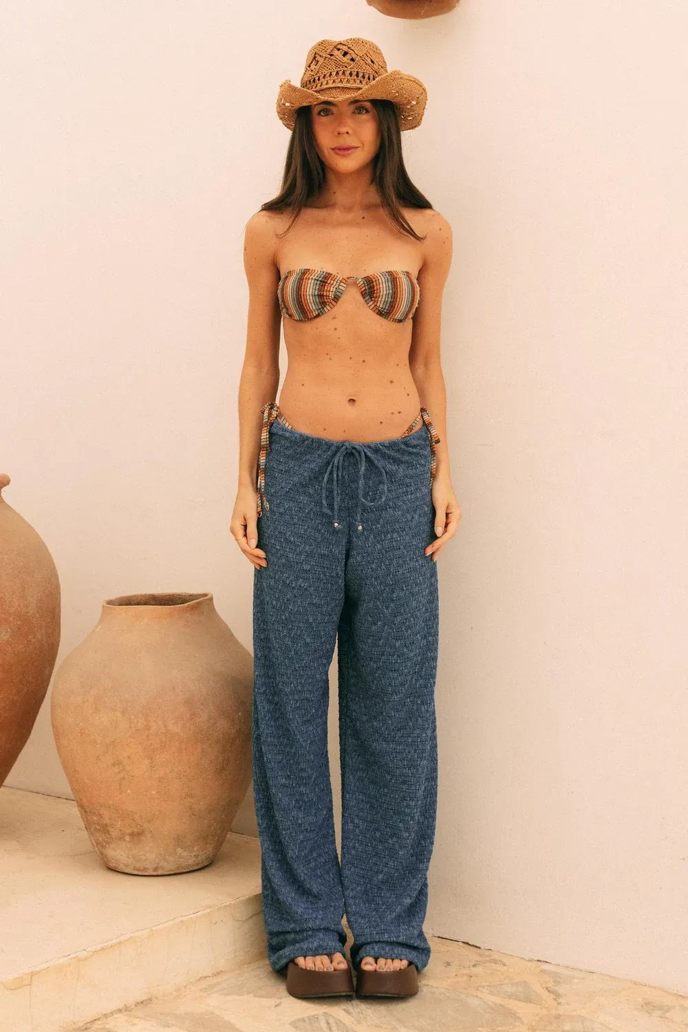 calça moana blu marino é simplesmente perfeita! com a modelagem reta e caimento fluido, feita em tecido texturizado na cor azul marinho. o cós conta com cordão de ajuste que garante conforto e ajuste personalizado. o acabamento é simples e alinhado, ideal para usar em qualquer ocasião e fazer várias combinações diferentes!
